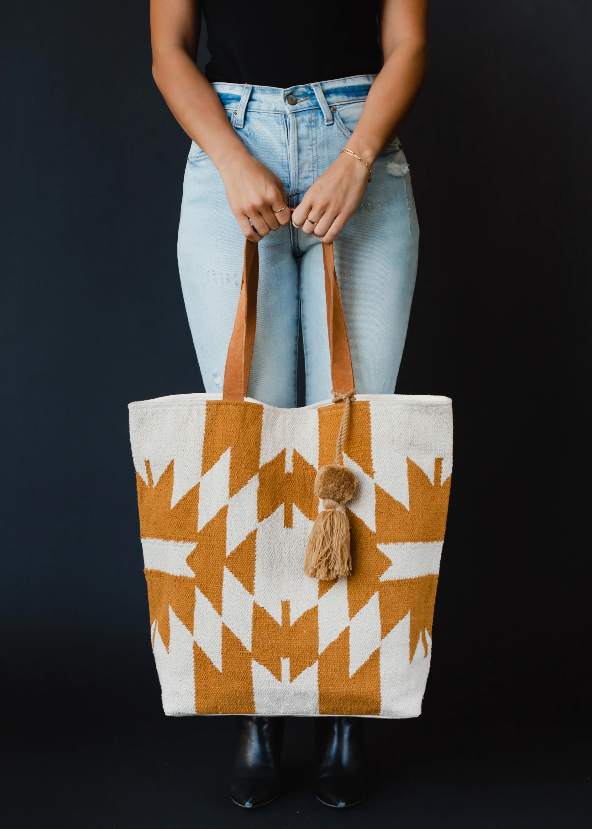 - Cream and camel western-inspired tote