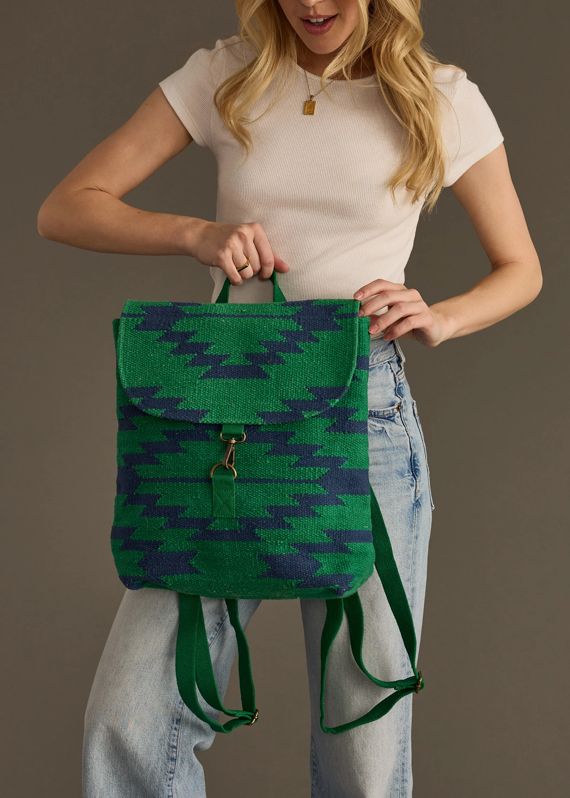 - Green and navy western-inspired backpack